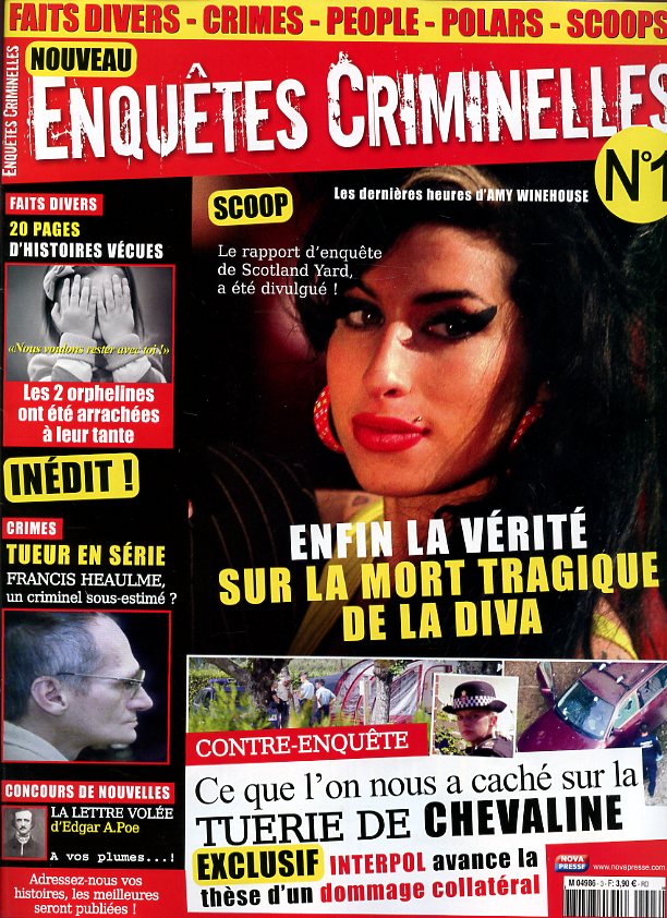 4 – Le nouveau magazine Enquêtes criminelles cherche des nouvelles policières pour ses prochains numéros. Envoyez votre nouvelle (entre 20 000 et 40 000 signes, soit entre 10 et 20 pages) à contact@novapresse.com