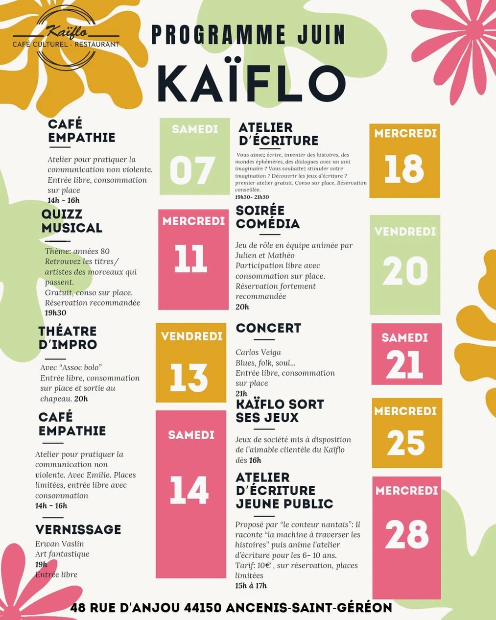 • Un atelier d’écriture au café culturel le Kaiflo le mercredi 18 juin à 19h30