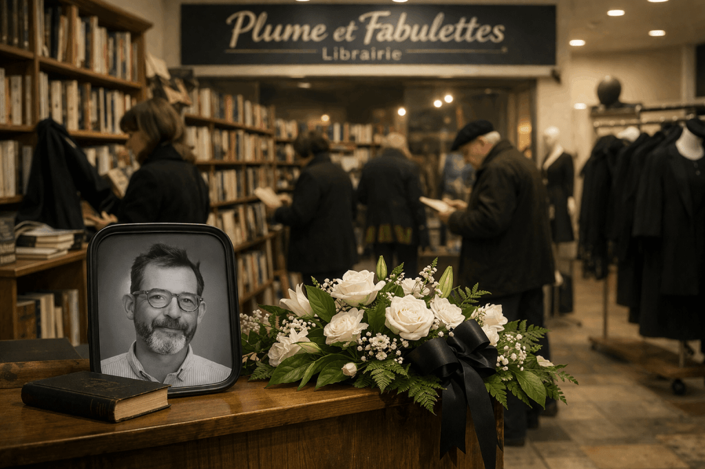 Aujourd’hui avait lieu l’enterrement du gérant de « Plumes et fabulettes », librairie bien connue du centre-ville d’Ancenis-Saint-Géréon. La librairie, située à deux pas de l’église où a eu lieu la cérémonie, comportait un coin pour les enfants et un espace BD.
