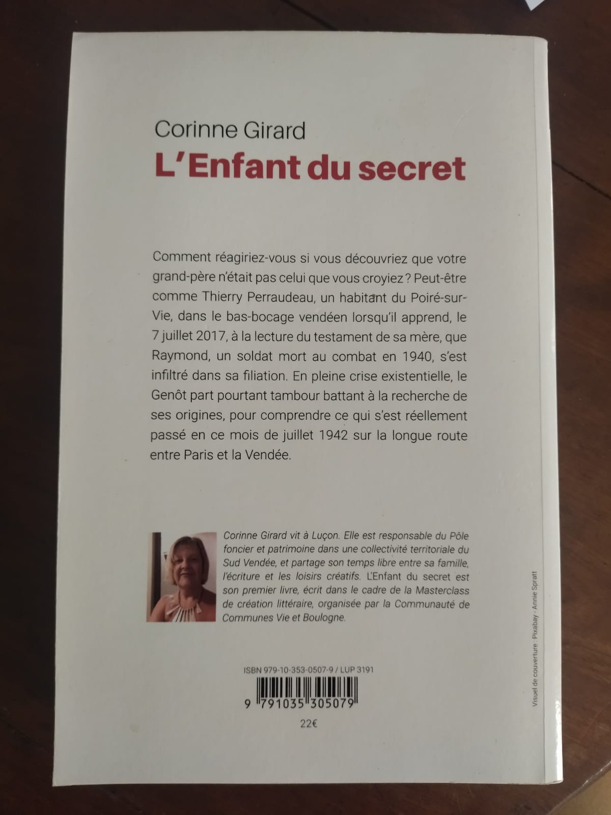 Corinne Girard a écrit son roman durant notre deuxième Masterclasse de création littéraire en Vendée. Ce roman haletant, basé sur un secret de famille, vous fera découvrir une face cachée de la Deuxième guerre mondiale.